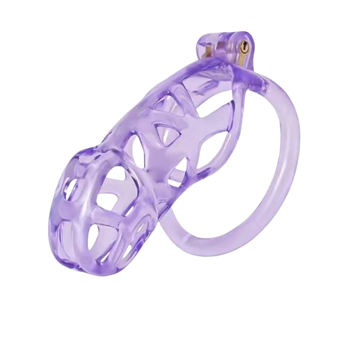 Jaula de castidad Mamba Ice de diseño más nuevo, liviana, de resina transparente morada, dispositivo de castidad impreso en 3D, jaula para pene BDSM para hombres